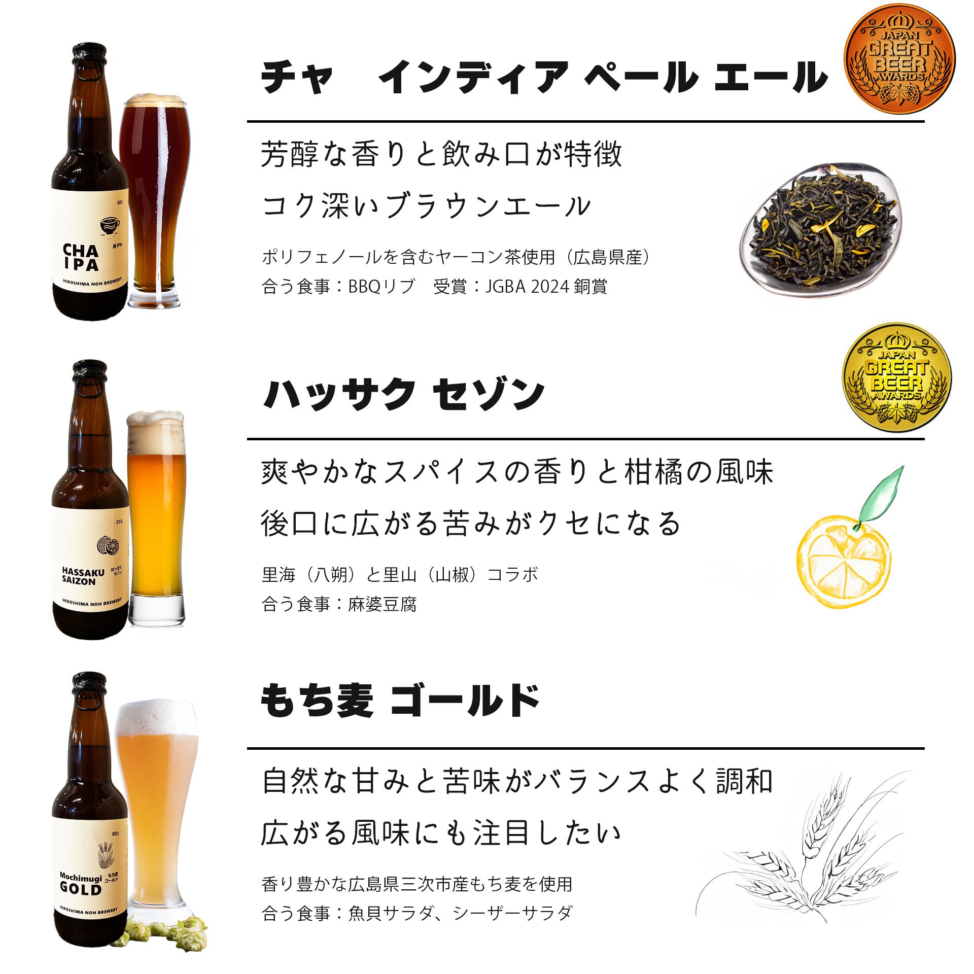 原材料:麦芽(イギリス製造)、小麦(広島県産)、八朔、山椒、ホップ